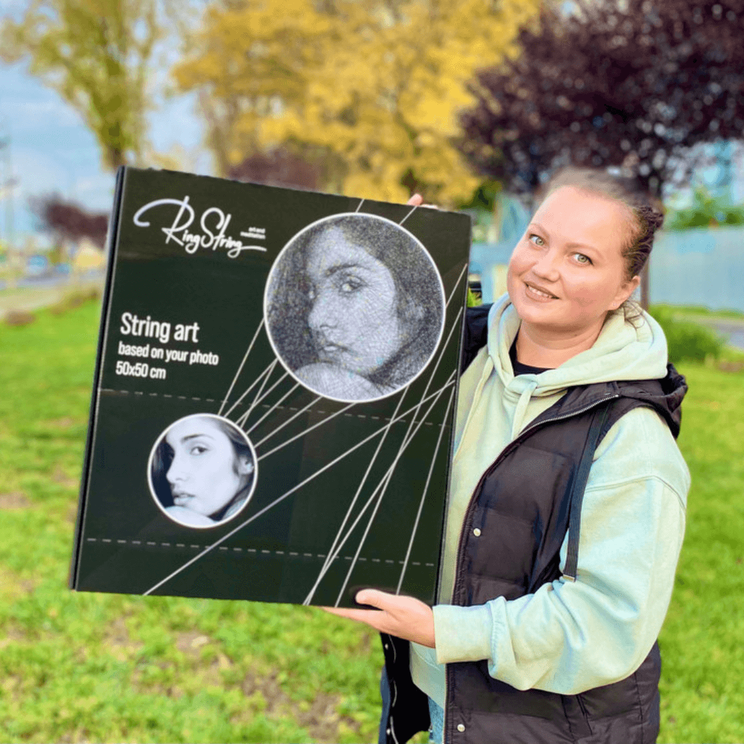 Follow the paper instructions included in the kit, enter the unique code on the ringstring.art website, and upload your photo. Then, choose your preferred assembly option and get creative!